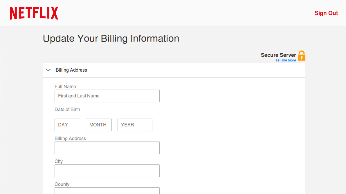 Upon submitting their credentials, victims are then directed to webpages requesting additional membership details (Figure 2) and payment information (Figure 3). These websites also attempt to mimic authentic Netflix webpages and appear legitimate. Once the user has entered their information, they are taken to the legitimate Netflix homepage.