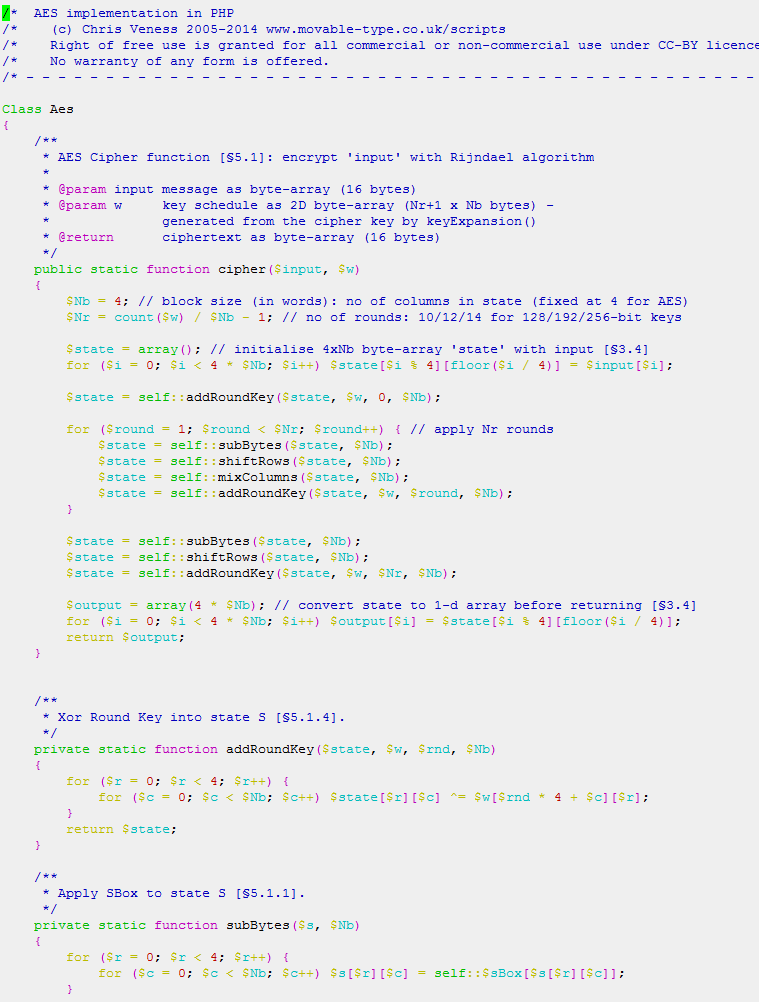 Figure 5: PHP code used at server side for encryption